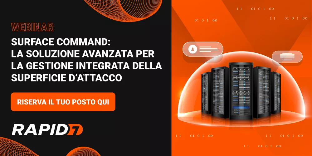 In questo webinar esclusivo, dedicato ai partner Rapid7, David Higgs – esperto di Rapid7 – ti guiderà alla scoperta di Surface Command, la piattaforma che rivoluziona il modo di monitorare, analizzare e automatizzare la gestione della superficie d’attacco.