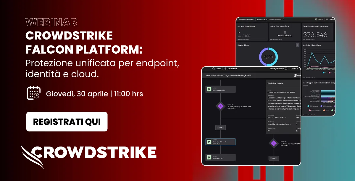 Webinar Crowdstrike | Falcon Platform: protezione unificata per endpoint, identità e cloud Descrizione