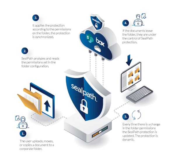 Sicurezza oltre la cartella: Anche se i documenti escono dalla cartella protetta, rimangono sotto il controllo di SealPath, garantendo una protezione continua e riducendo i rischi di accesso non autorizzato o di perdita di dati.